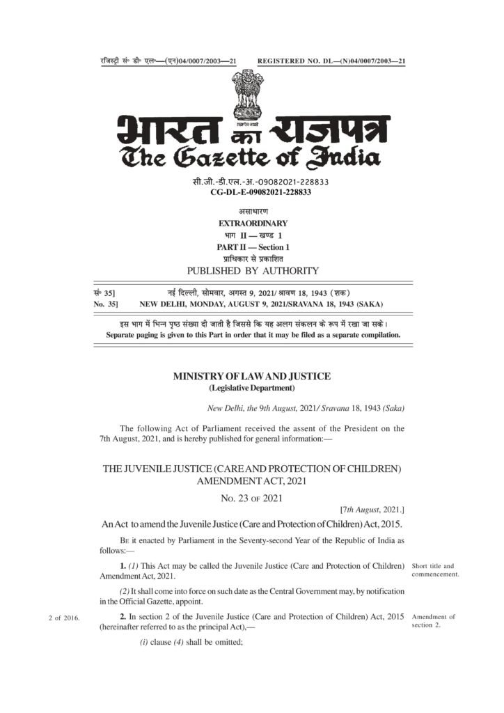 Juvenile Justice (Care and Protection of Children) Model Amendment Act, 2021
