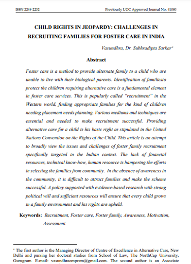 CHILD RIGHTS IN JEOPARDY: CHALLENGES IN RECRUITING FAMILIES FOR FOSTER CARE IN INDIA