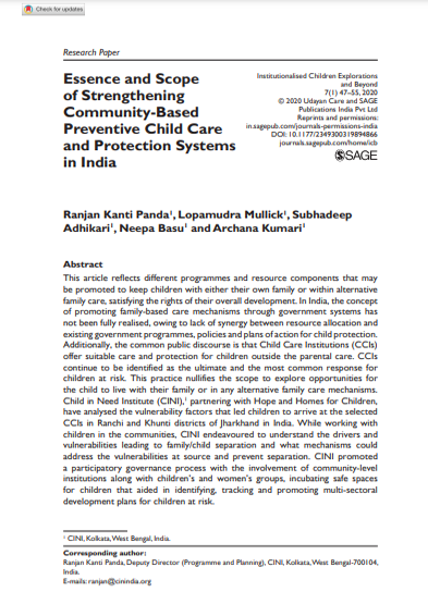 Essence and Scope of Strengthening Community-Based Preventive Child Care and Protection Systems in India