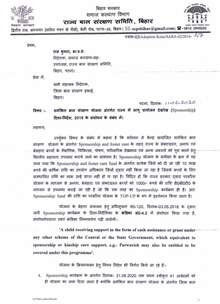 Amendments to Sponsorship Guidelines, 2020_Bihar